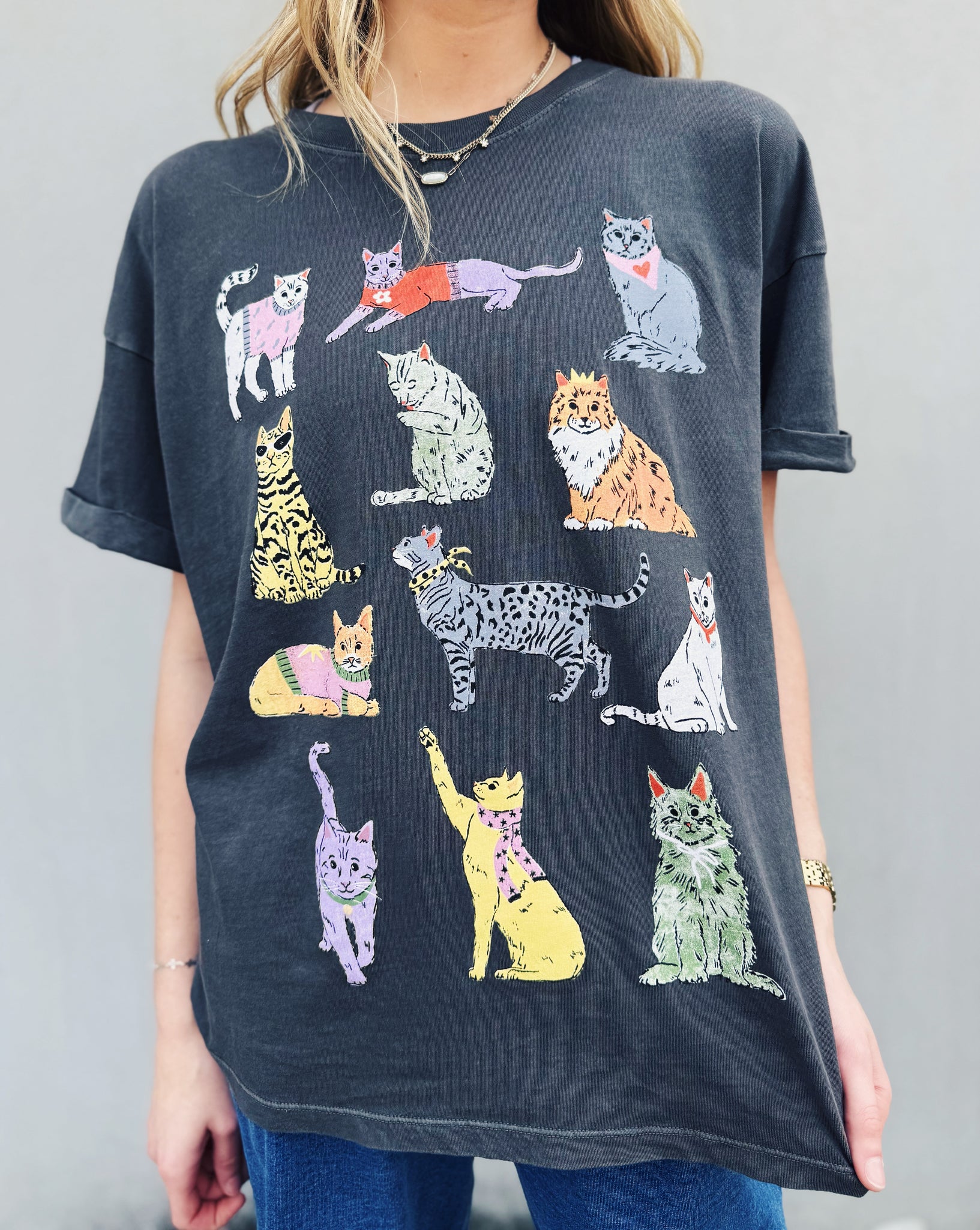 GIRL DANGEROUS: CATS TEE - CHARCOAL