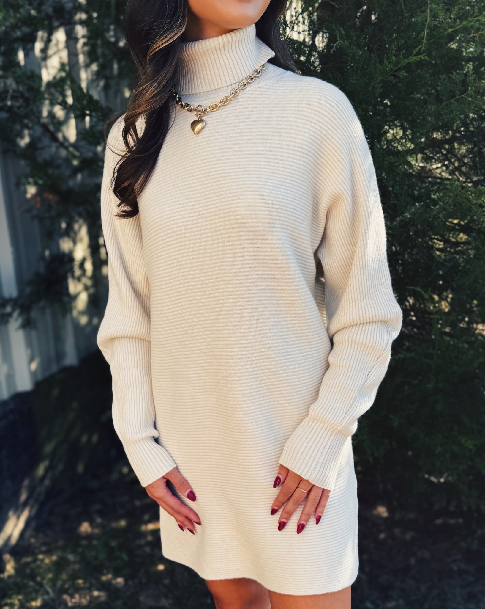 SADIE & SAGE: ANYA TURTLE NECK DRESS - CREAM