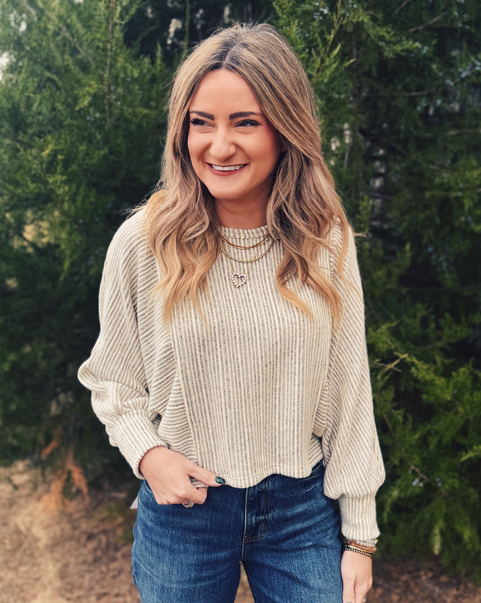 SADIE & SAGE: ARDEN STRIPE DOLMAN TOP - GREY IVORY