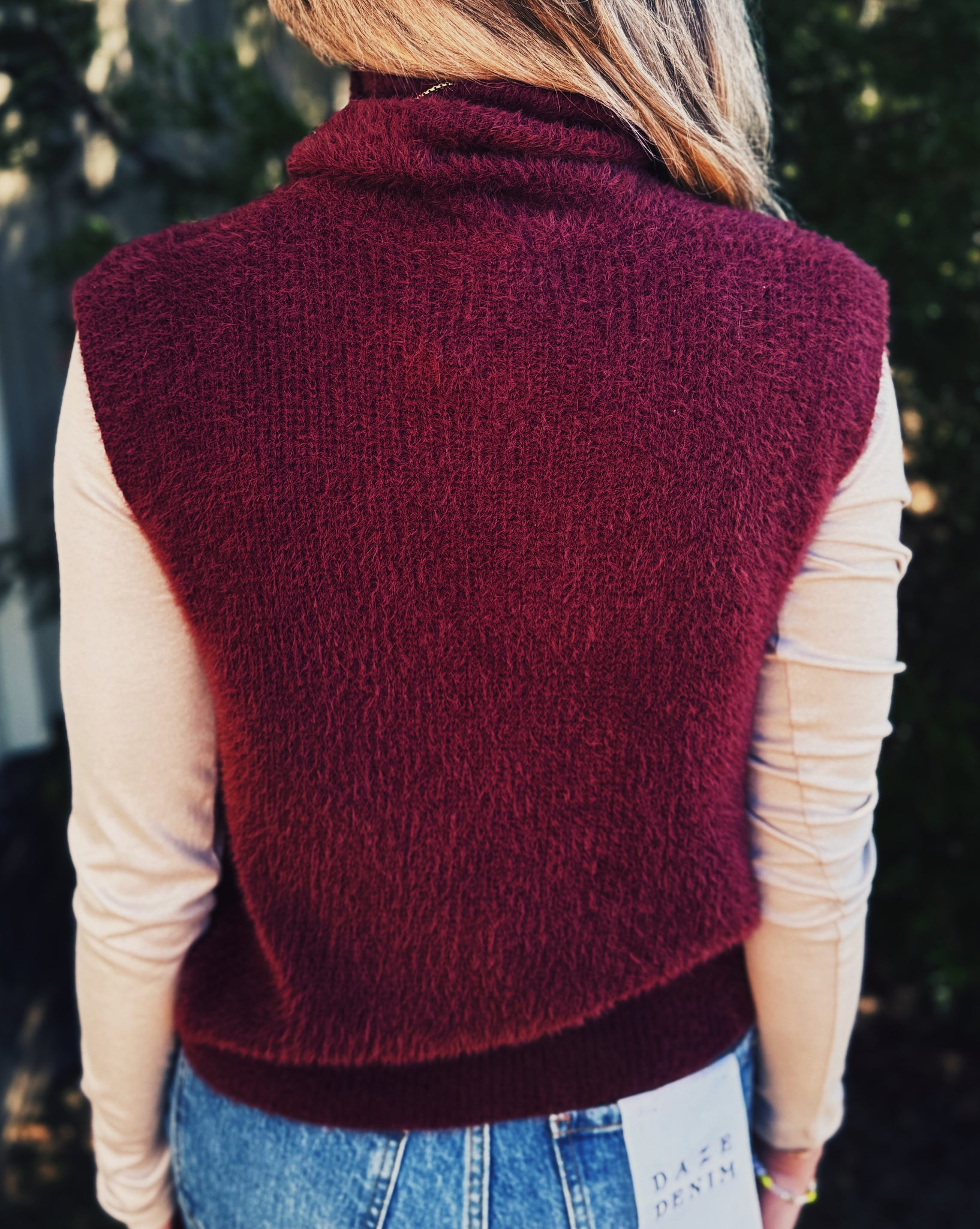 SADIE & SAGE: CROSBY FUZZY SWEATER - BURGUNDY