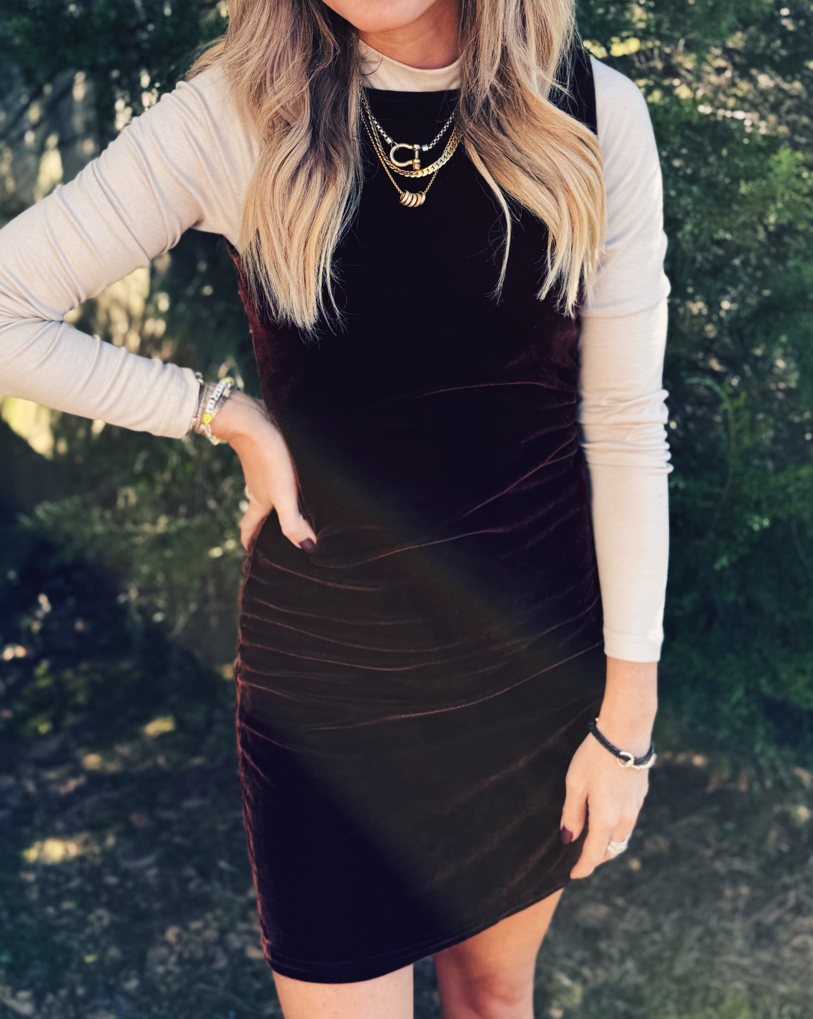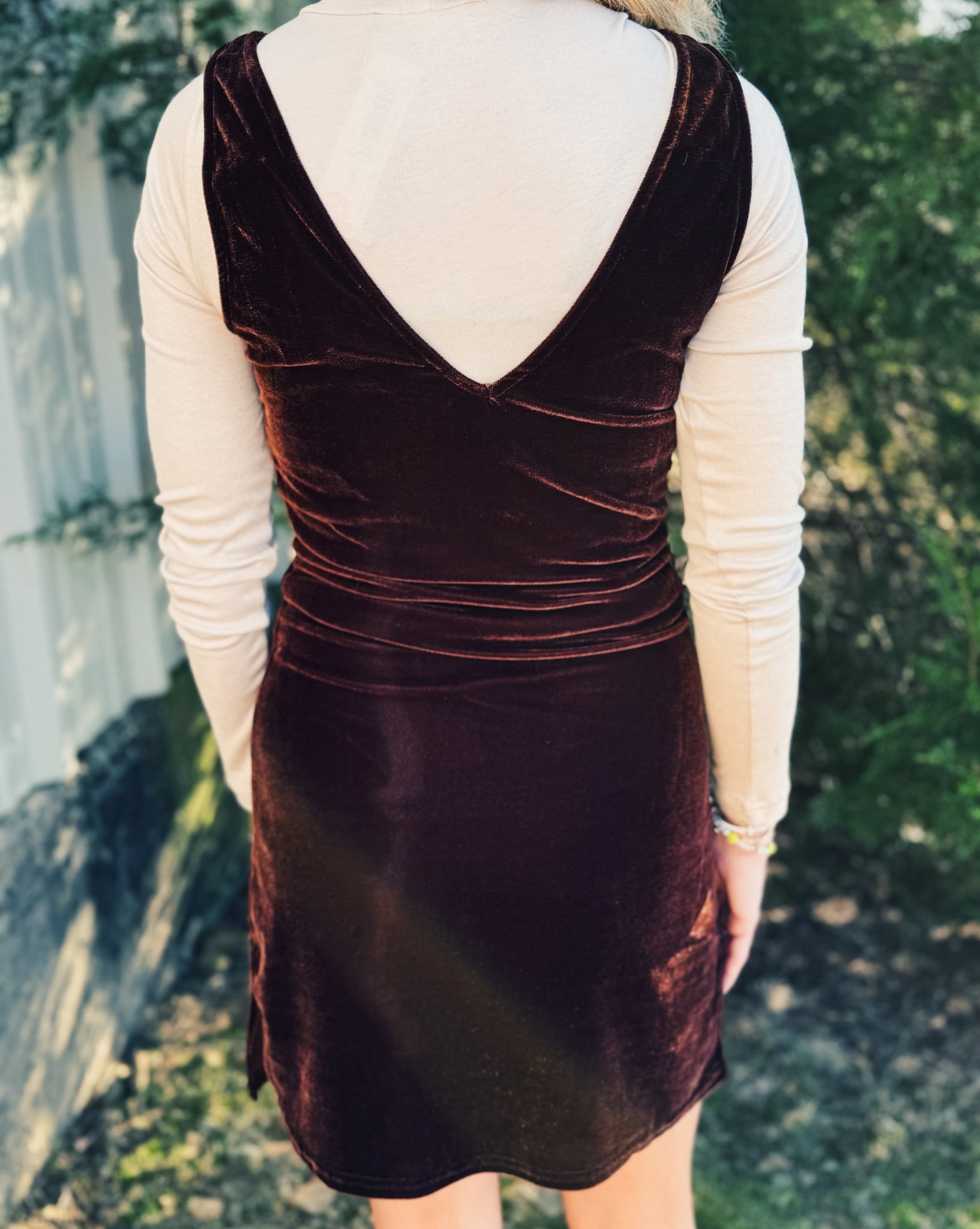SADIE & SAGE: MIDNIGHT OIL VELVET DRESS - CHOCOLATE