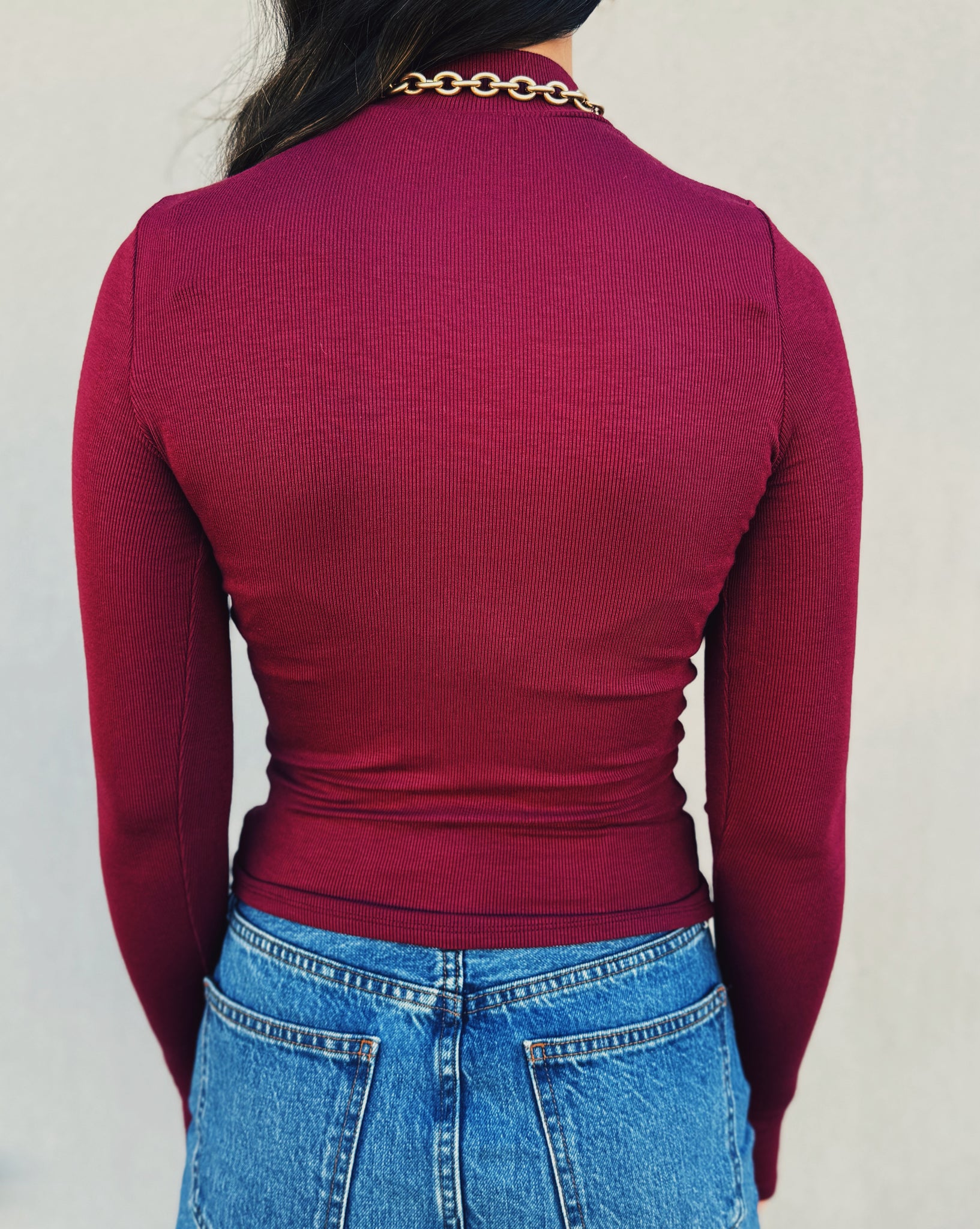 SADIE & SAGE: RONAN MOCK NECK TOP - BURGUNDY