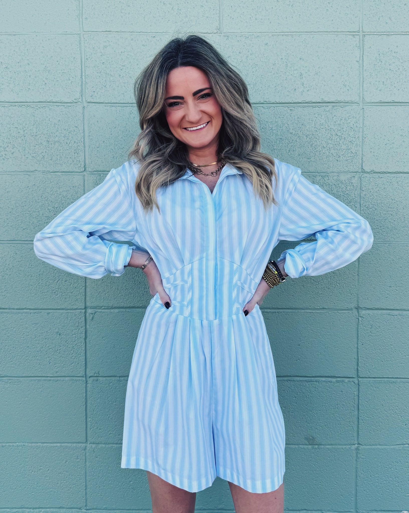 STEVE MADDEN: ARIA ROMPER - BLUE STRIPE