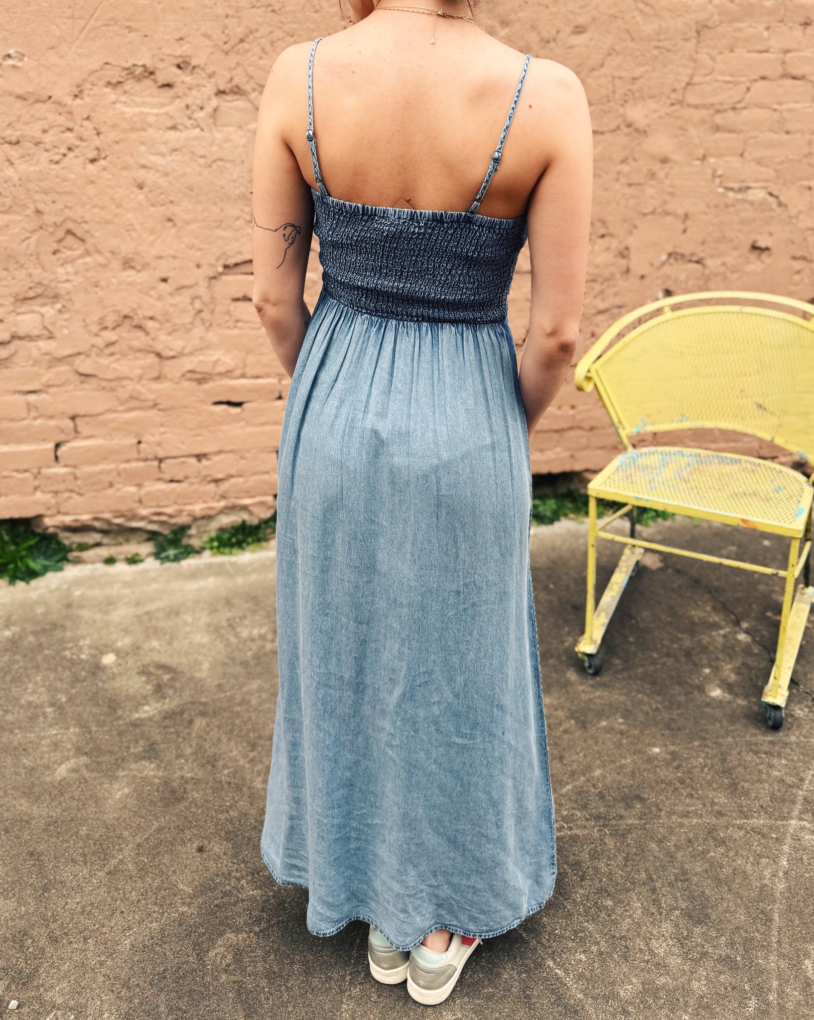 Z SUPPLY: BAYSIDE CHAMBRAY MAXI DRESS - MEDIUM CHAMBRAY